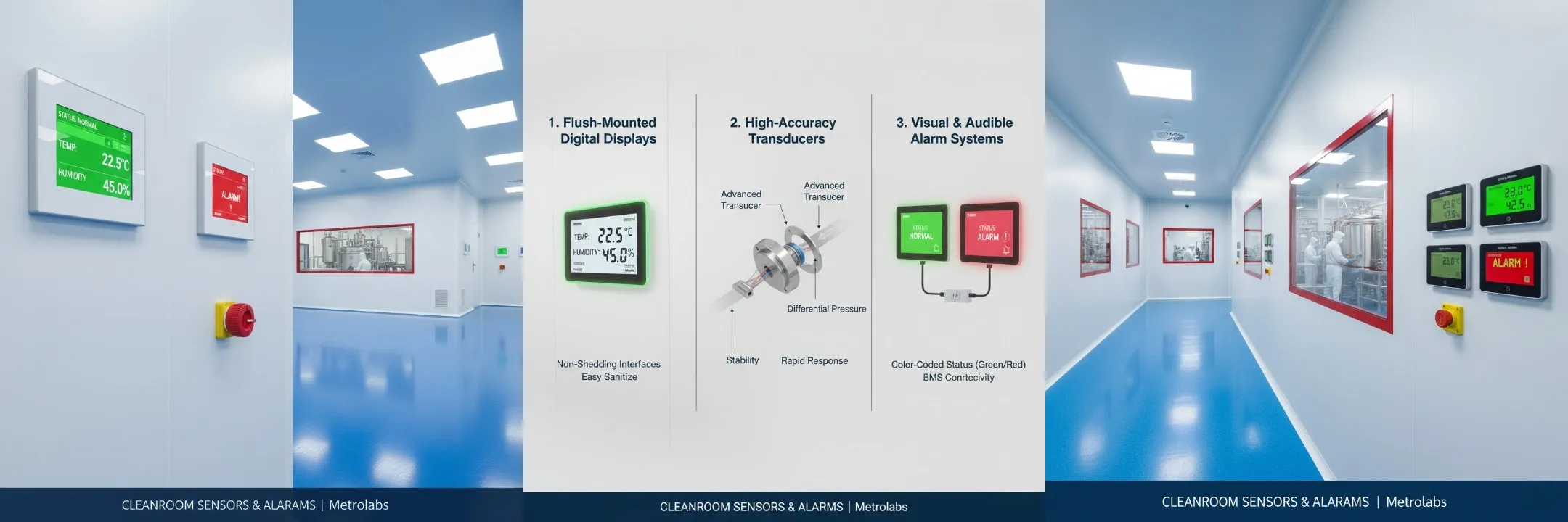 Maintaining a specific pressure gradient (typically between $10 \text{ Pa}$ and $15 \text{ Pa}$ between adjacent rooms) is a regulatory requirement for ISO and GMP compliance. Metrolabs sensors provide the data needed to: