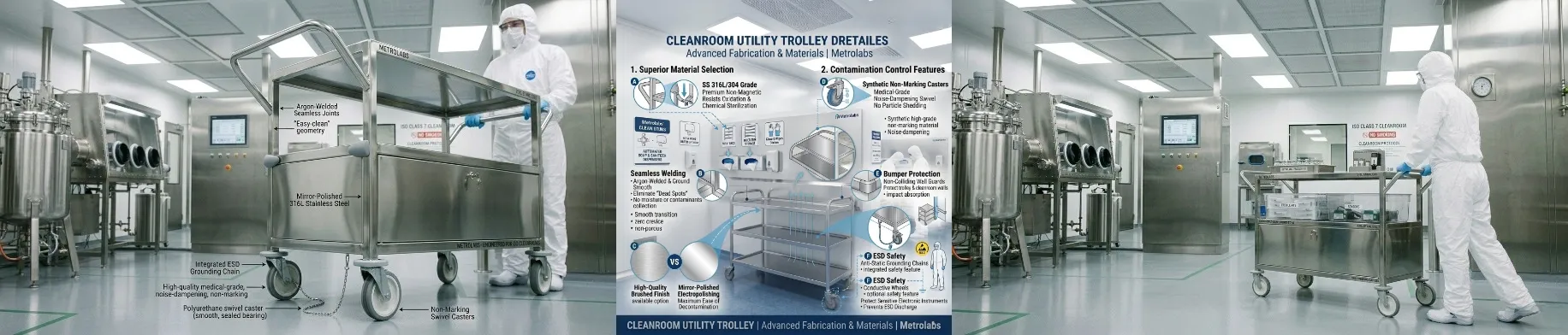 At Metrolabs, we prioritize material integrity and ergonomic functionality to ensure our trolleys exceed ISO cleanroom standards.