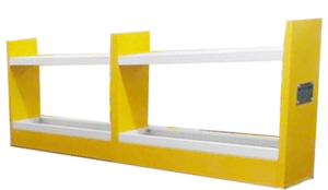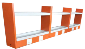 Two or three tire reagent storage racks made of 1mm thick pre-coated galvanized iron sheet (TATA or JSW steel) and completely finished with epoxy powder coating.