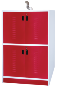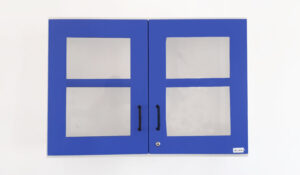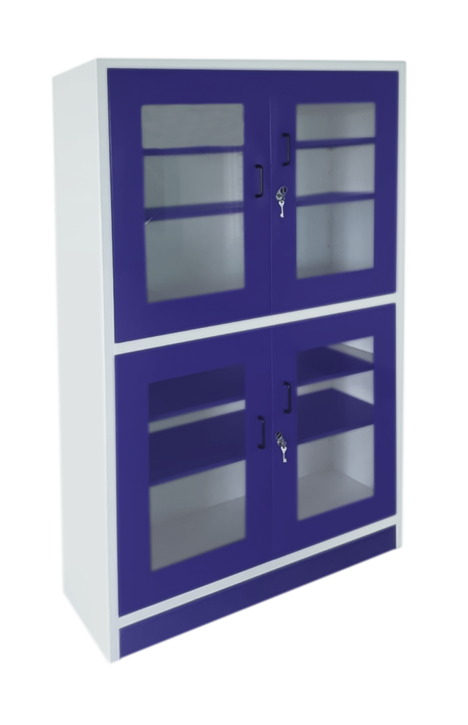 Colour combination of HALF WHITE fronts contrasting BLUE / GREEN / RED / ORANGE / GREY for aesthetic appeal by powder coating technique.