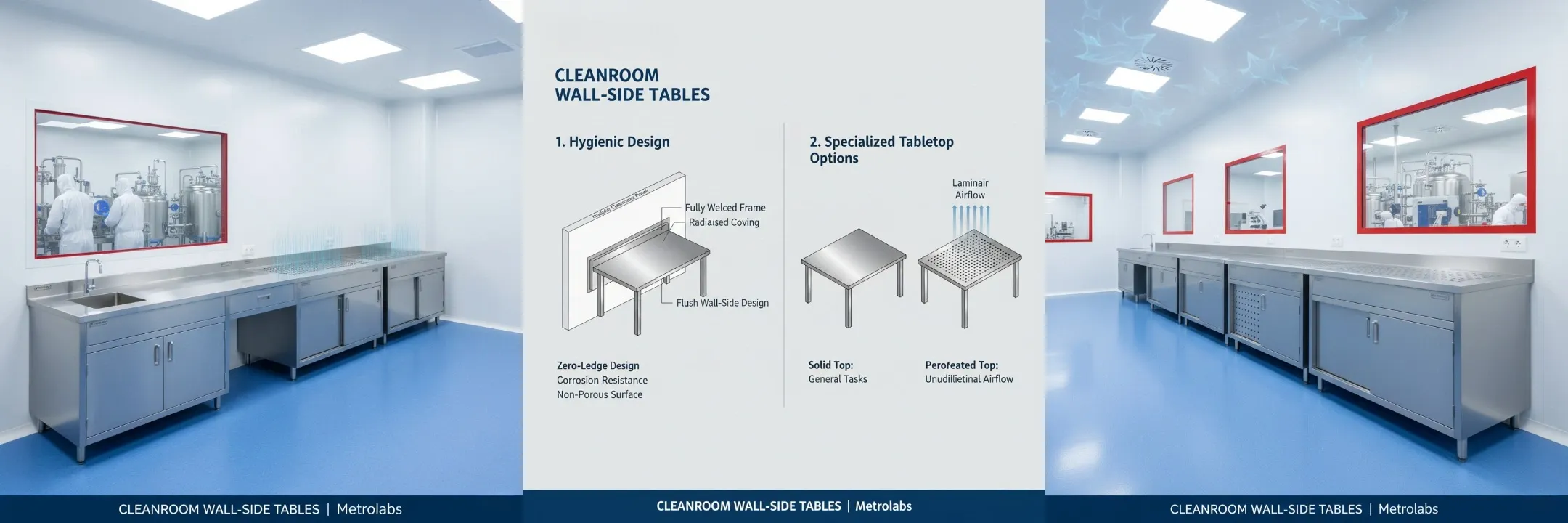 In a controlled environment, every piece of equipment must contribute to the overall sterility of the room. Metrolabs provides specialized Wall-side Cleanroom Work Tables, engineered to provide a robust, non-shedding workspace that integrates seamlessly with your facility’s layout.
